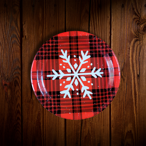 Copos de nieve. Rojo, blanco y negro. Plato Postre 7 pulg. 8 Unid.