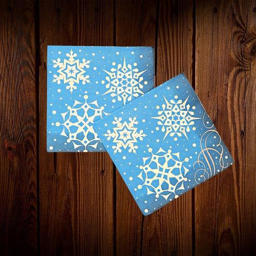 Copos de Nieve. Celeste y Blanco. Servilleta grande. 16 Unid. ULTIMO PAQUETE.