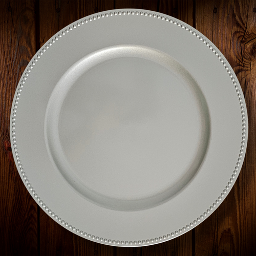 Plato base plastico Plateado. Borde puntos. Unidad