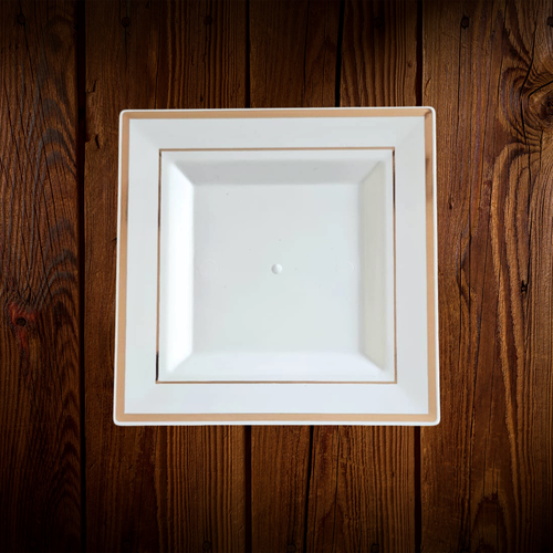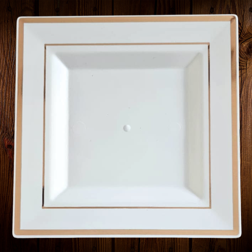 Blanco cuadrado borde rose gold. Plato Principal. Unidad