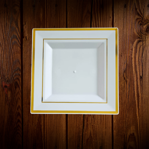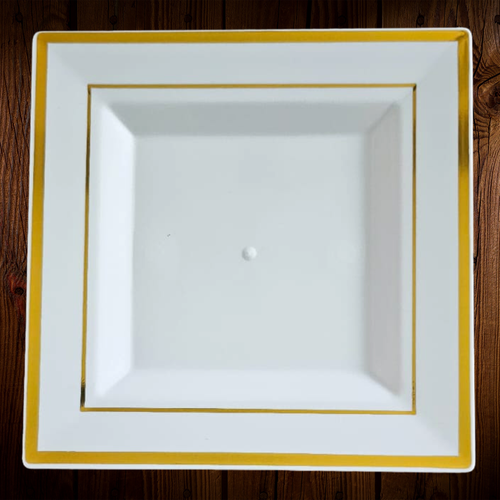 Blanco cuadrado borde dorado. Plato Principal. Unidad.