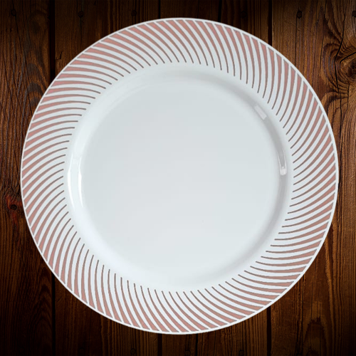 Set Blanco borde rayas rose gold. Plato Principal. 8 Unidades. ULTIMO SET