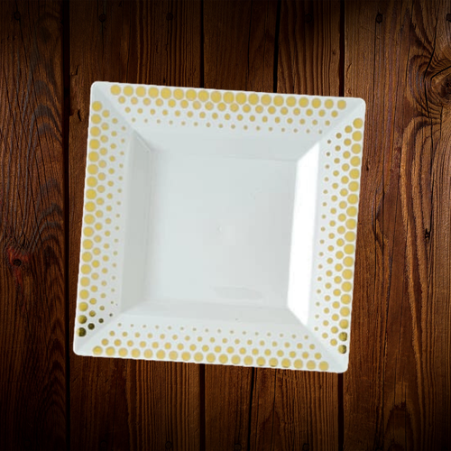 Cuadrado con puntos dorados. Plato Postre. 4 Unid. ULTIMO SET
