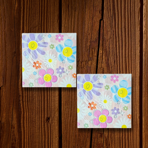 Margaritas de colores. Servilletas cuadradas pequeñas. 15 Unid.