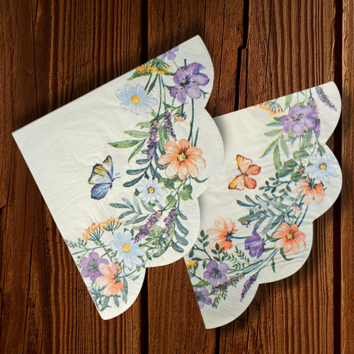 Servilleta Abanico Flores y Mariposa. 16 Unid.