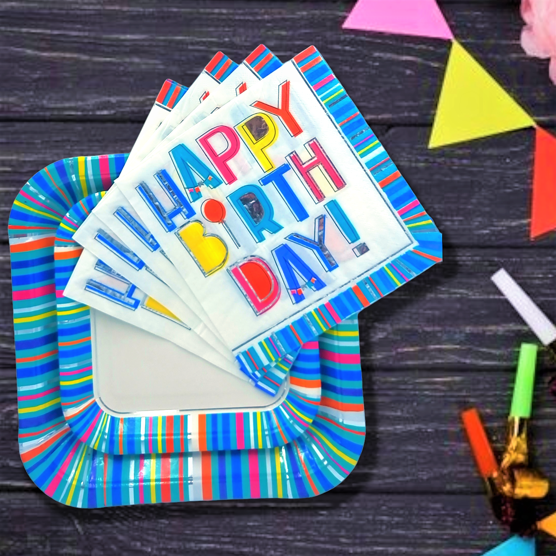 Plato principal diseño azul y plateado. Set de 8 platos de cartón. Vive tu mesa!