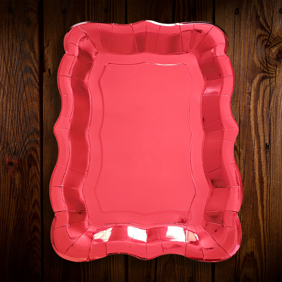 Bandeja para servir de cartón resistente con borde metalizado, disponibles en negro y blanco, Medidas 14 por 10 pulgadas. Vive tu mesa!