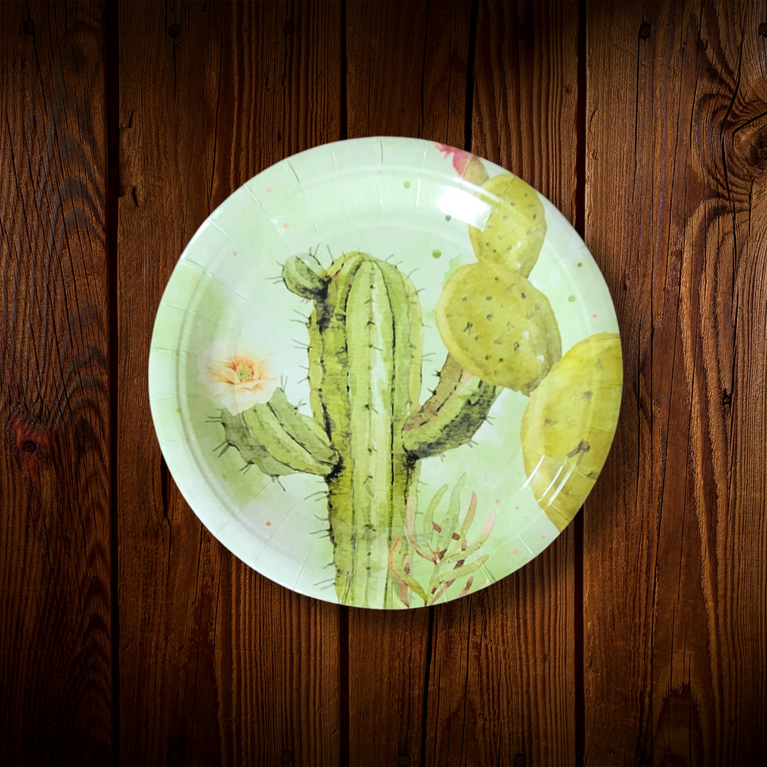 Plato para postre diseño Cactus Set de 8 platos de cartón. Vive tu mesa!