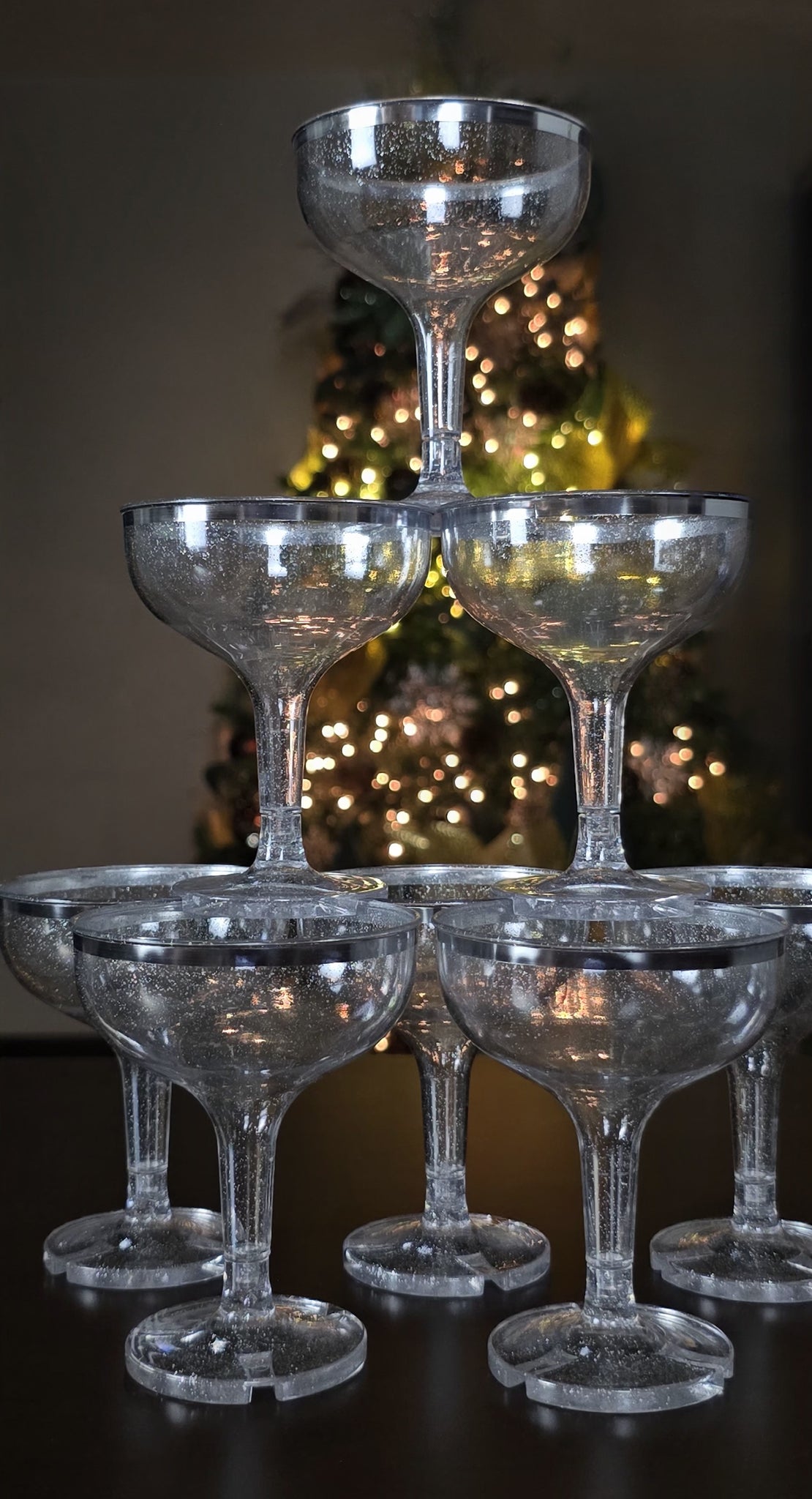 Copas acrilicas apilables para Champagne, con capacidad para 5 oz. Base con canales para que puedas colocarlas unas sobre otras sin temos a que puedan caerse ni quebrarse. Vive tu mesa!
