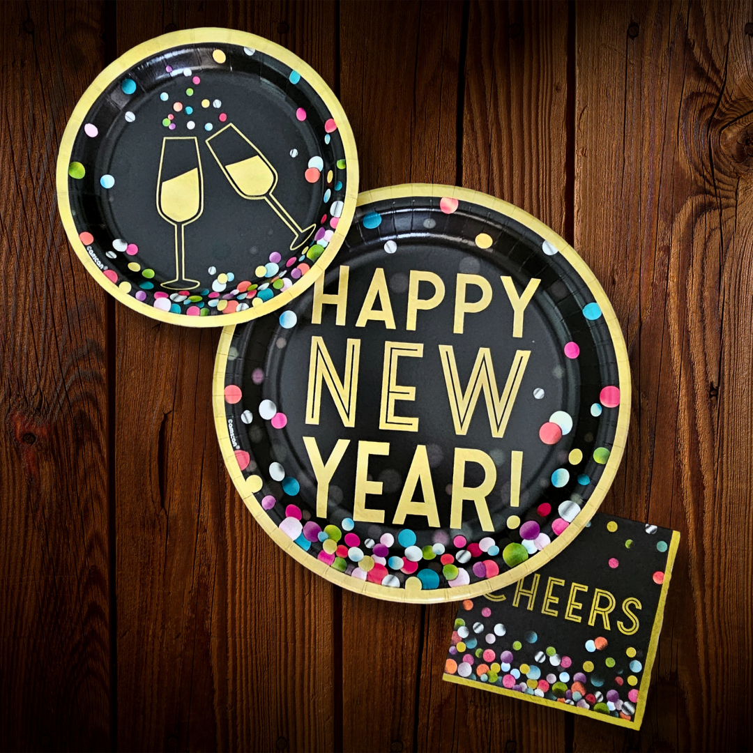 Paquete de 10 platos principales de 10 pulgadas con diseño Happy New Year y confetti de colores, Vive tu mesa!