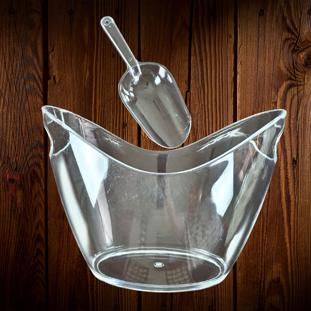 Hielera acrilica de 3.5 litros con capacidad para 2 botellas de vino o champagne, incluye cuchara acrilica para hielo. Vive tu mesa!