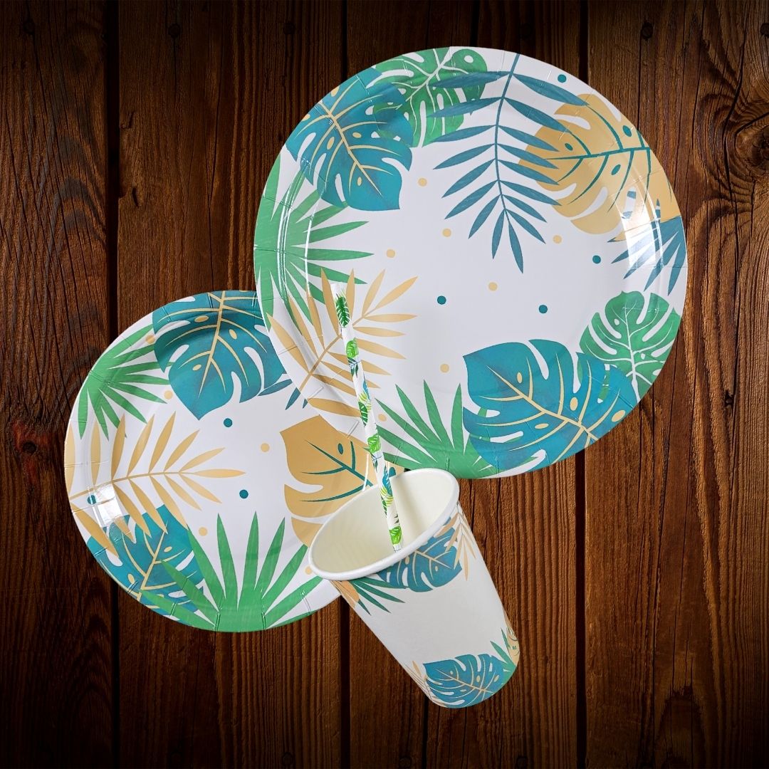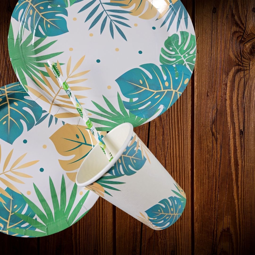Hojas turquesa. Vasos de cartón. 9 onzas. 8 Unid