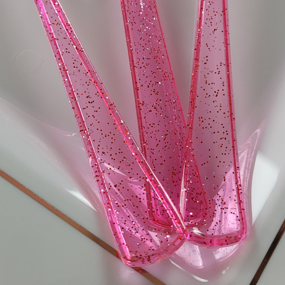 Juego de cubiertos rosados con destellos. 3 Piezas.