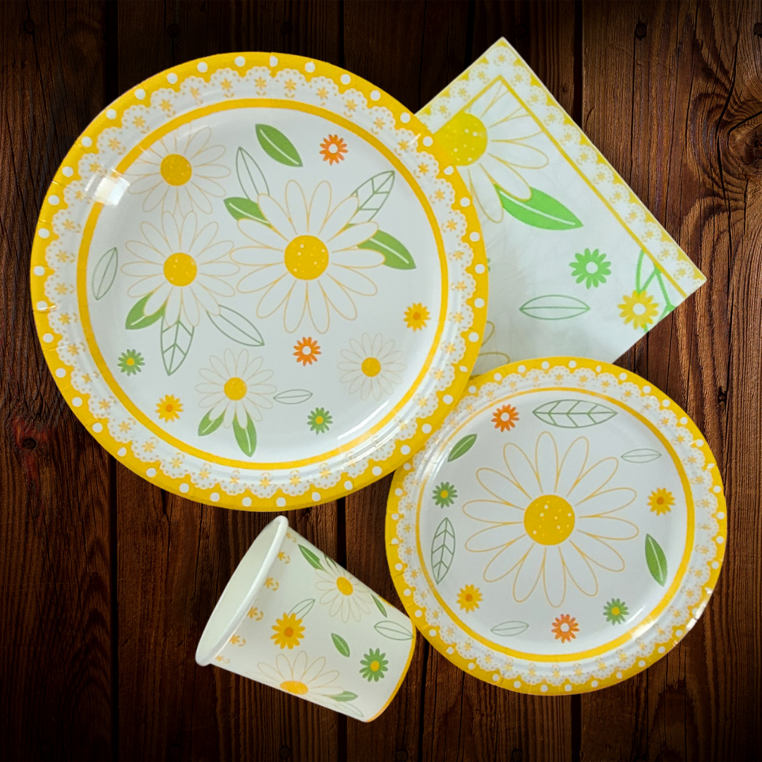 Paquete de 10 servilletas de papel cuadradas con borde celeste pastel y flores en tonos pastel, Vive tu mesa!