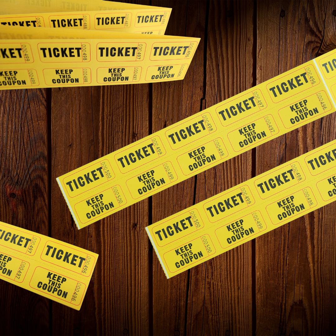 Una tira de 50 tickets de entrada para cine fabricados en cartón de 1x2 pulgadas, impresos a una sola cara.
