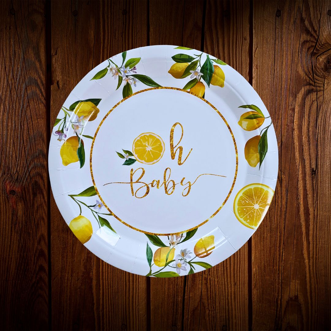 Oh Baby. Plato para postre diseño limones. Set de 8 platos de cartón. Vive tu mesa!