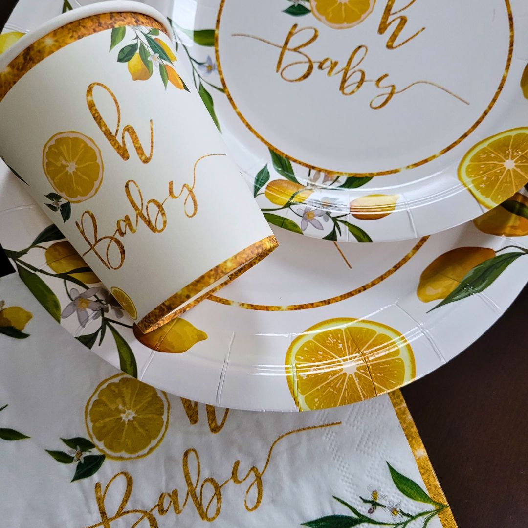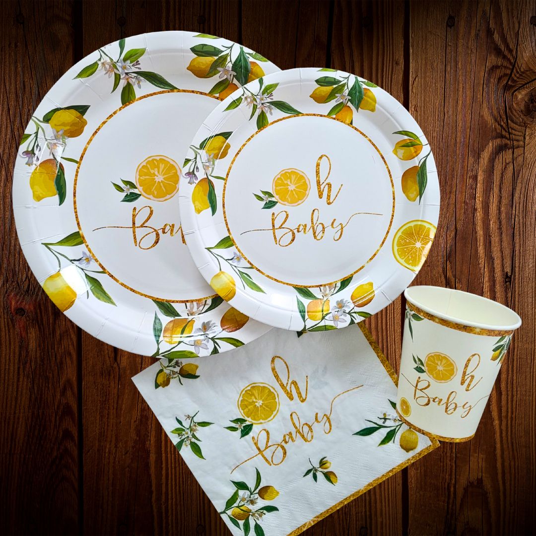 Oh baby. Plato principal diseño limones. Set de 8 platos de cartón. Vive tu mesa!