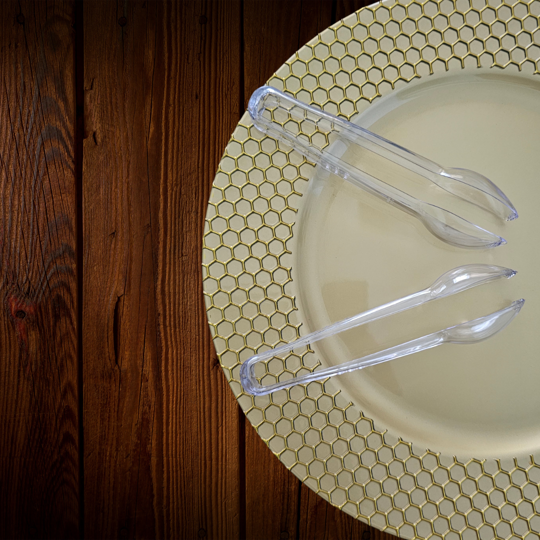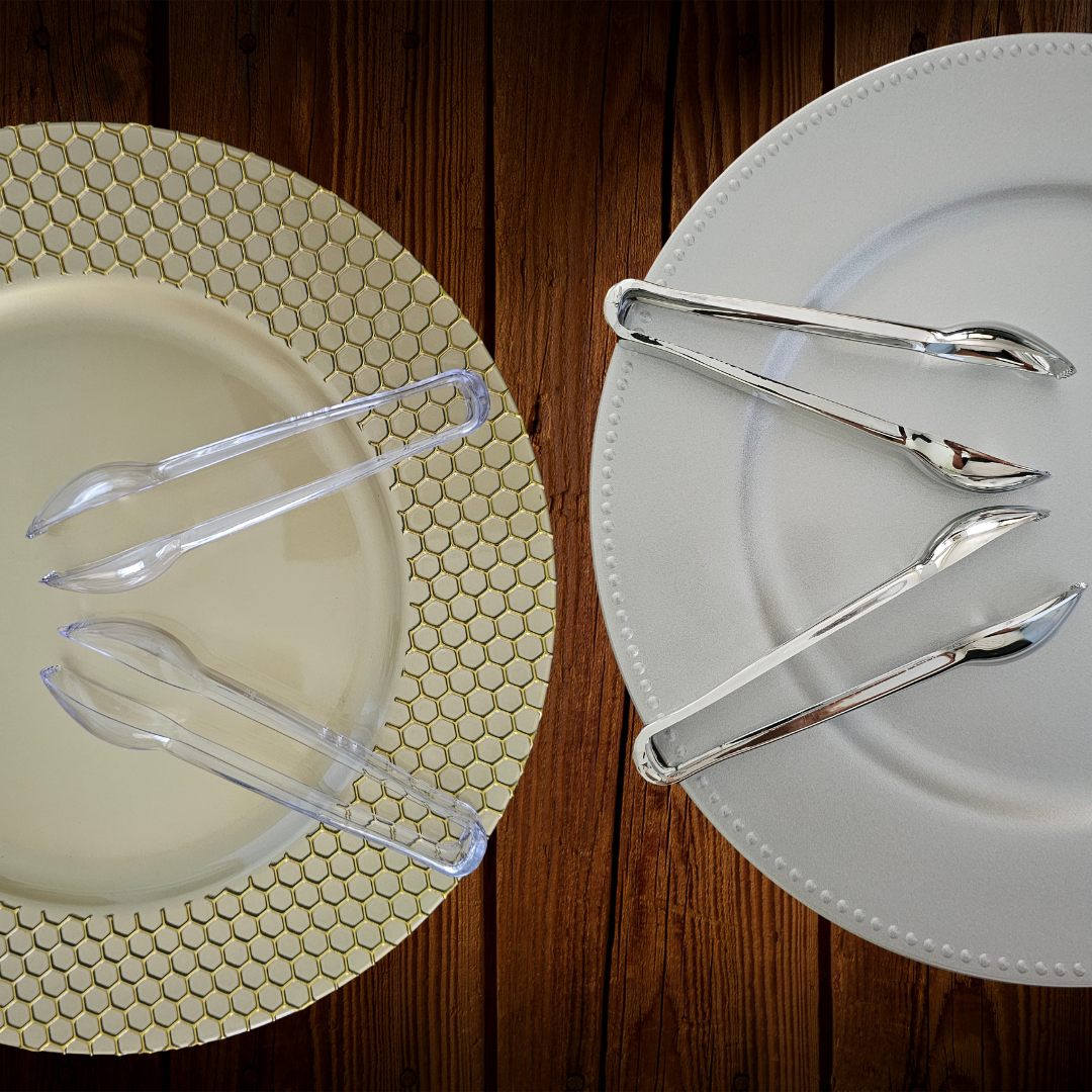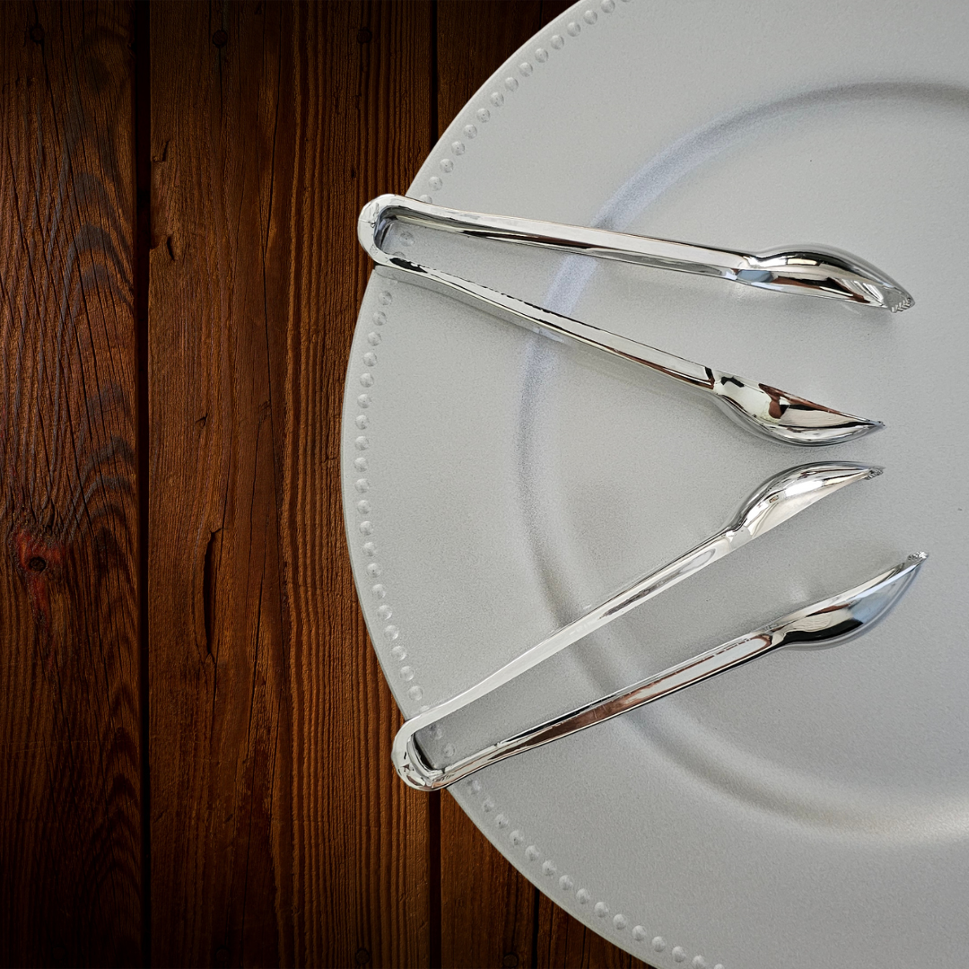Pinza pequeña para servir jamones y quesos, Disponible en plateado y transparente. Medidas: 16 cms. de largo. Unidad. Plástico de alta calidad y duración. Vive tu mesa!