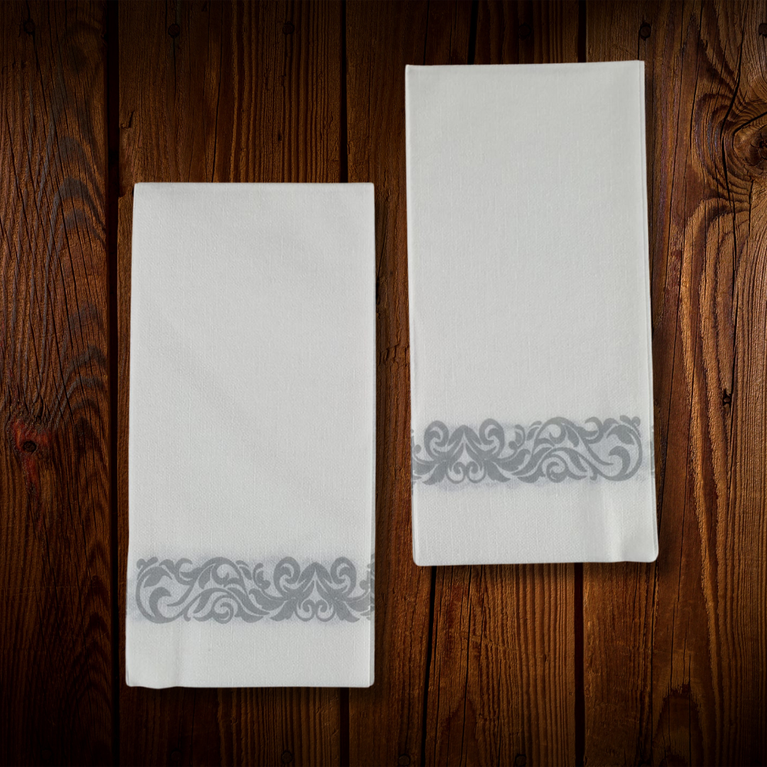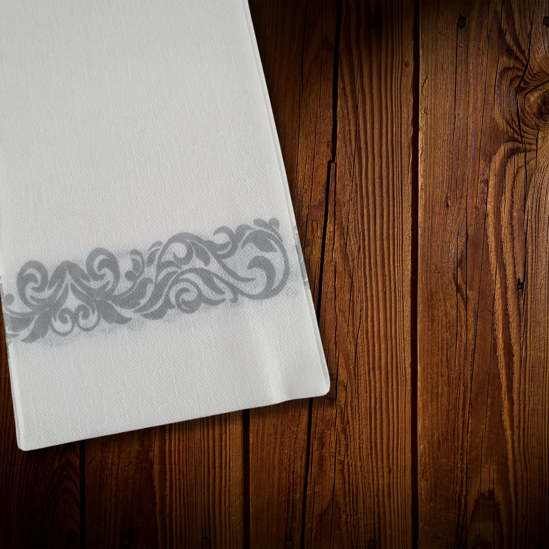 Paquete de 10 servilletas rectangulares grandes blancas con borde plateado. Vive tu mesa!