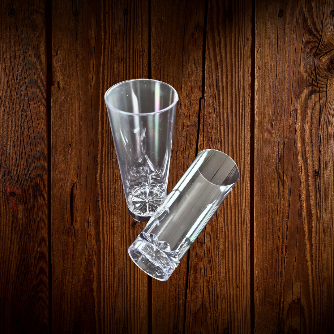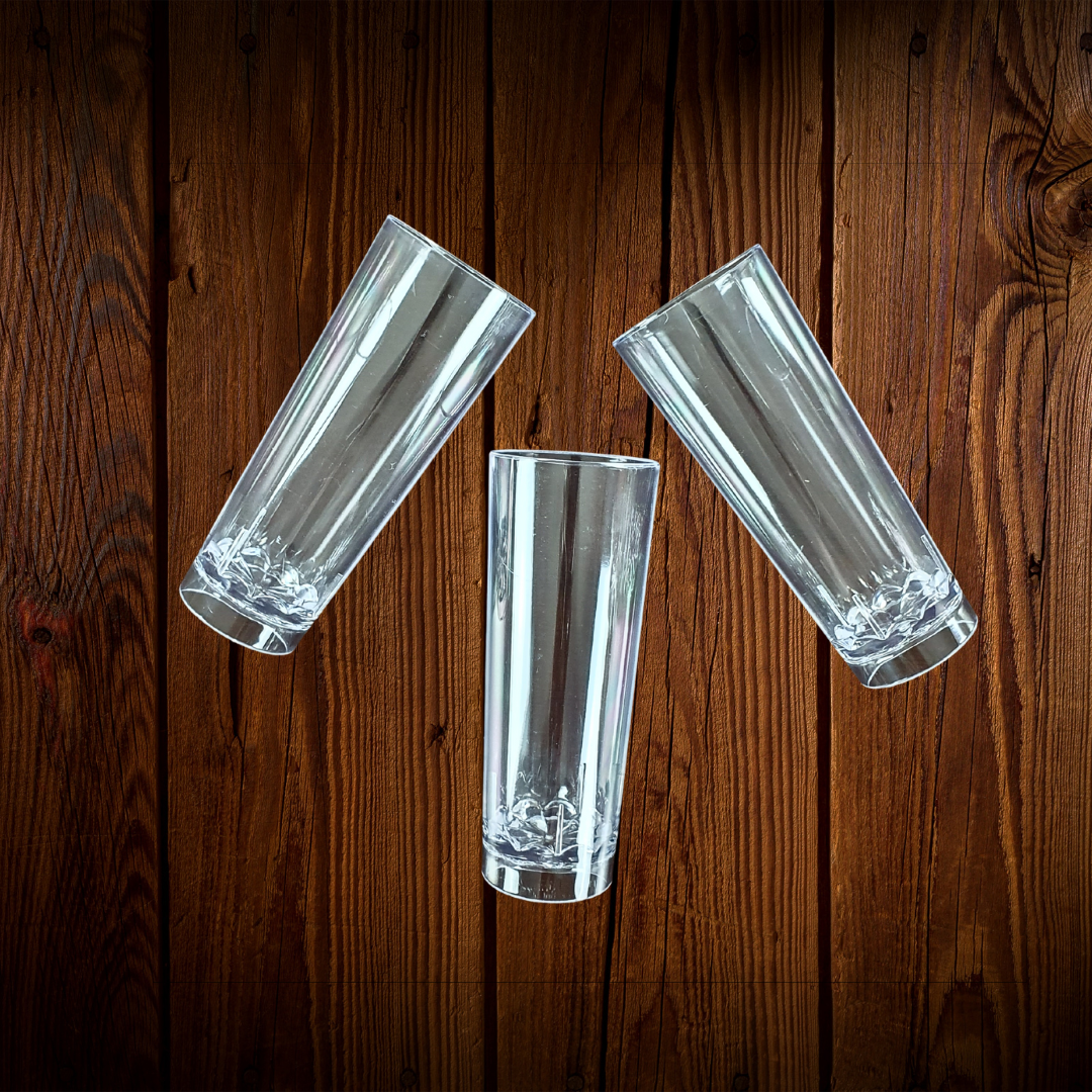 Set de 3 shots altos clear. Capacidad de 3.5 oz. Salud! Vive tu mesa!