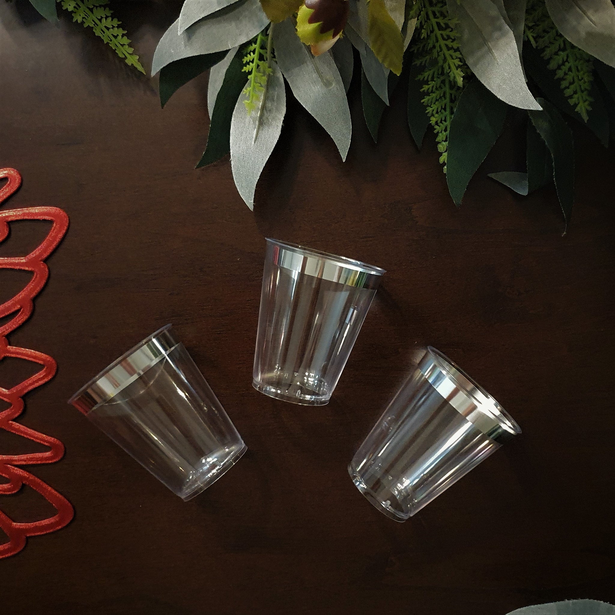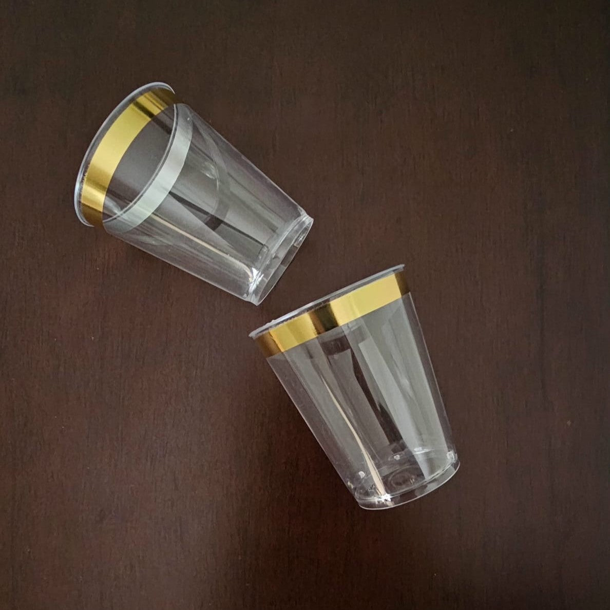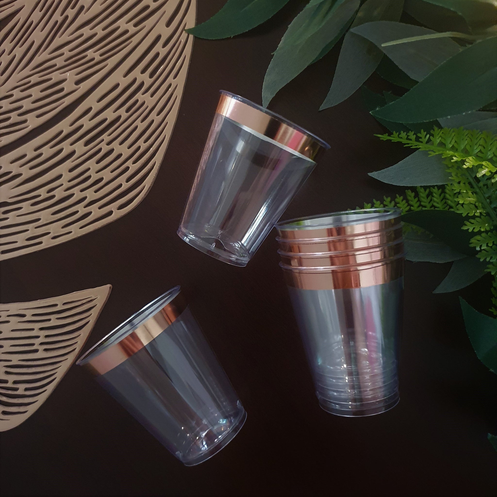 Shot con borde metálico colores disponibles: plateado, dorado y rose gold. Capacidad 2.5 oz. Altura 6 cms. Vive tu mesa!